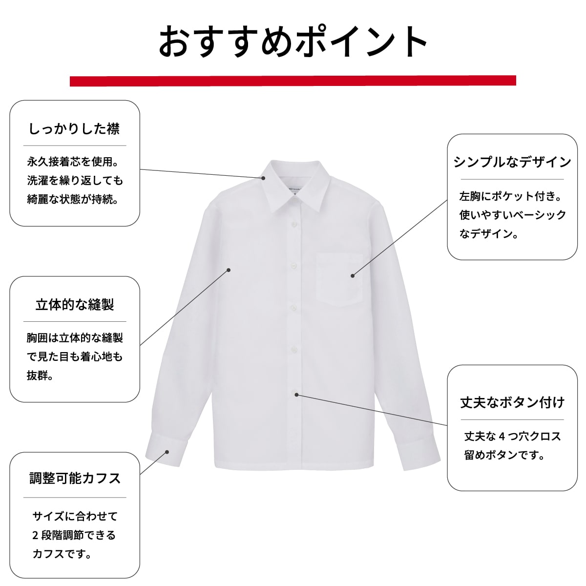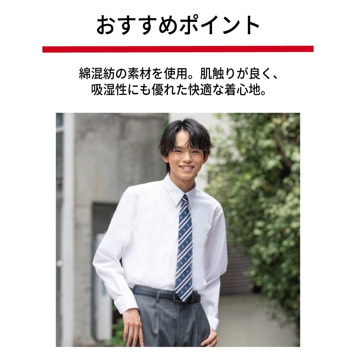 ■ノーアイロンの長袖スクールシャツです。制服通販カンコーオンラインショップ原宿でも非常に人気の商品です。男子におすすめのスクールシャツは、お手入れが簡単で、洗濯後もすぐに着用できるので便利です。サイズも豊富なので、誰でも自分にピッタリな一着を見つけることができます。シンプルなデザインなので、どんな制服にも合わせられます。