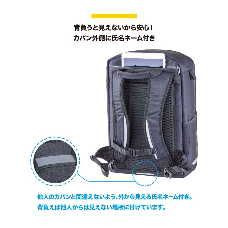GIGAスクールにも対応したタブレット収納付き大容量モデル。ABワイド対応版。 生地には軽量な「210デニール+ PVC加工」を使用。機能を充実させたシンプルモデル。